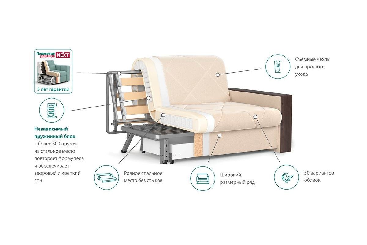 - Спальное место: 62 x 200 см