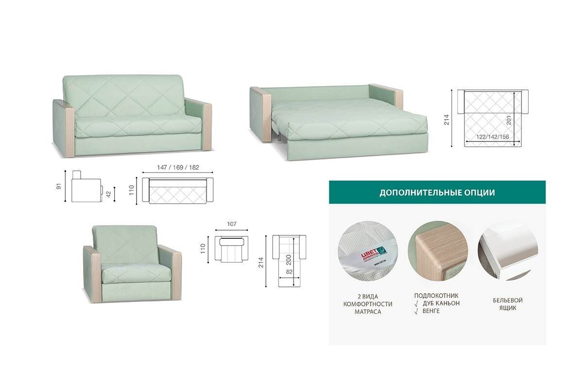- Спальное место: 84 x 207 см