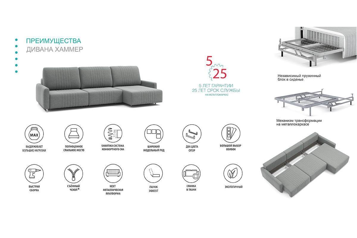 Диван Хаммер с узкими подлокотниками, артикул 10405858