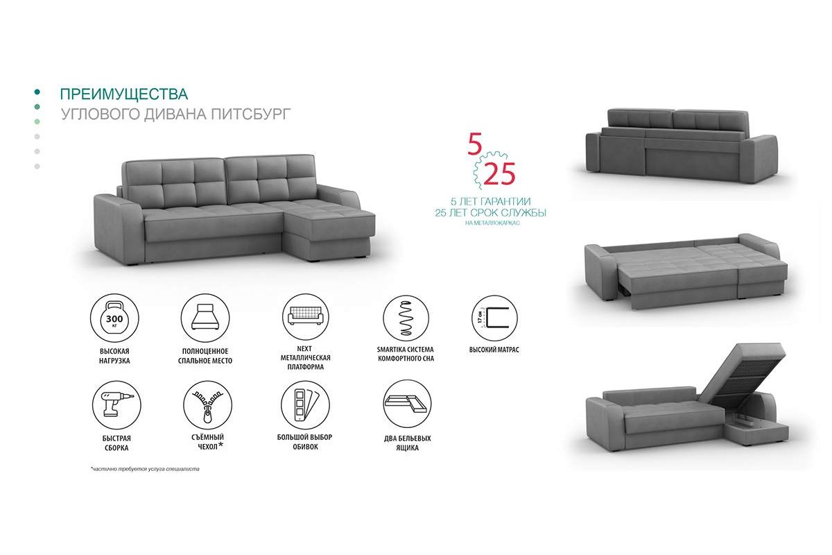 Диван Питсбург, артикул 10299378